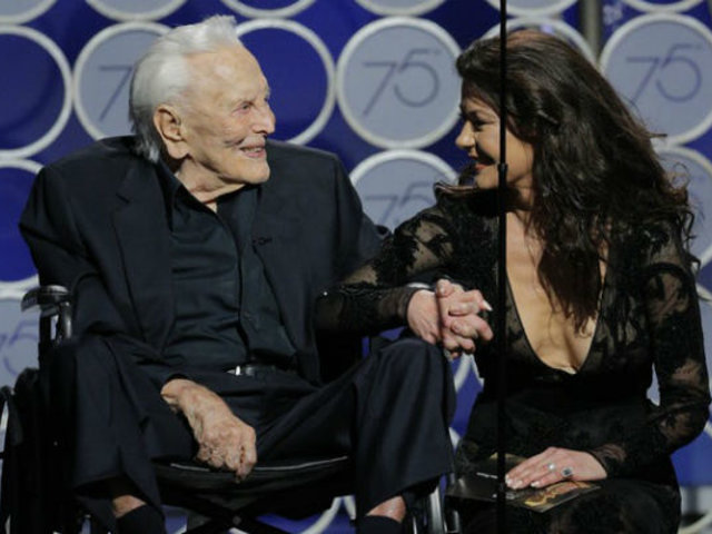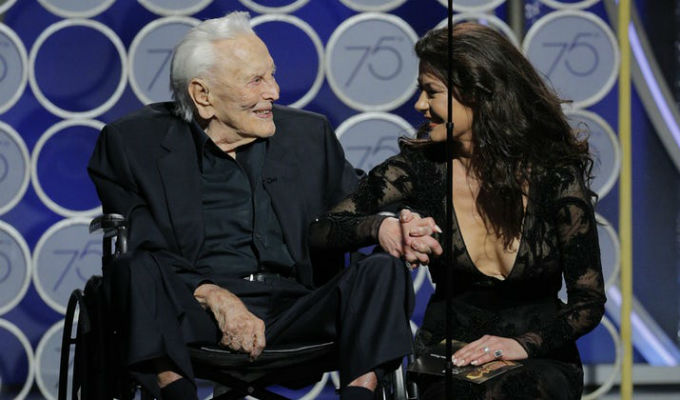 Douglas subió al escenario junto a su nuera, la consagrada Catherine Zeta Jones, siendo ovacionado por todo el auditorio. Fue la esposa de su hijo Michael Douglas quien tomó la palabra y presentó la terna, tras lo cual el protagonista de ‘Espartaco’, dio una muestra de envidiable lucidez.