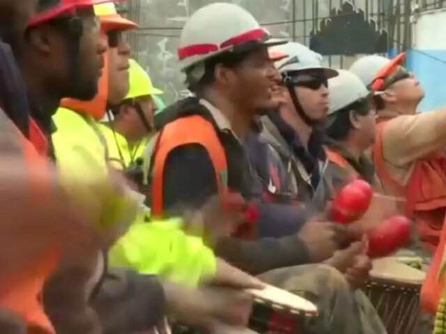Los cientos de trabajadores de una obra en Santiago hicieron un alto a sus labores para hacer resonar el lugar al ritmo de los tambores, terapia contra el estrés que promueve el proyecto ‘Tambores del alma’ y es patrocinado por la Cámara Chilena de la Construcción.