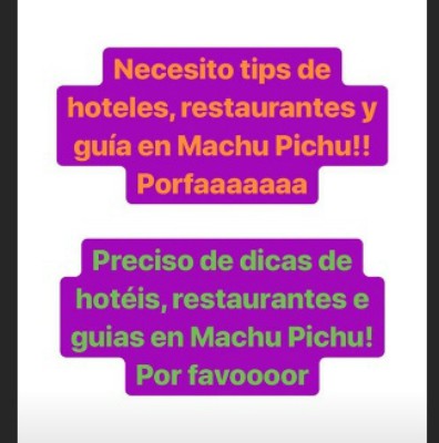 "Necesito tips de hoteles, restaurantes y guía en Machu Picchu!! Porfaaa", escribió.
