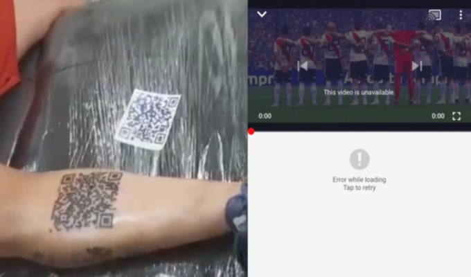 Luego de tatuarse un código QR en la pierna que se vincula a los goles de River Plate en la Final de la Copa Libertadores, un fanático del equipo decidió compartir el momento en Twitter. A las pocas horas, el video fue retirado por violación de derechos de autor.