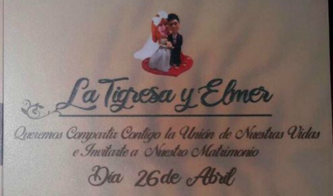 Los partes de matrimonio que presentó la cantante llamaron mucho la atención de sus seguidores, pues en la parte superior de la tarjeta se visualizó la caricatura con la fotografía de 'La Tigresa' y su actual pareja.