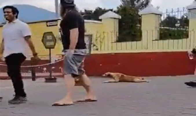 Esta vez, un perro engañó a unos turistas que pasaban por una calle para que lo acaricien, en el clip se puede apreciar como el can, se arrastraba por el suelo delante de una calle con gran afluencia de público en Guatemala.