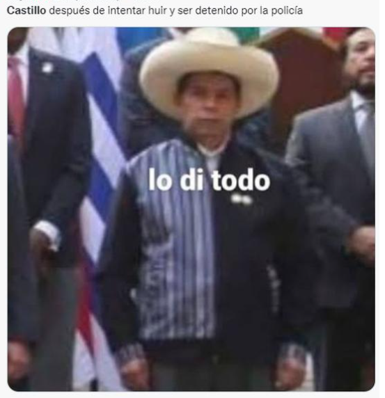 Cientos de cibernautas no dejaron pasar la oportunidad para crear divertidos memes tras el frustrado golpe de estado del ex presidente Pedro Castillo