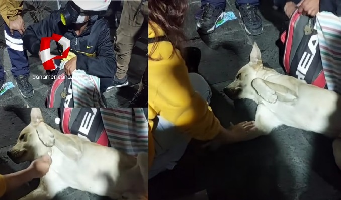 Tal como se puede apreciar en el video difundido en TikTok, el can de color blanco se encontraba tendido en medio de la pista entre los manifestantes. Este hecho no fue ignorado por un joven que reaccionó y prestó ayuda al amigo de cuatro patas.