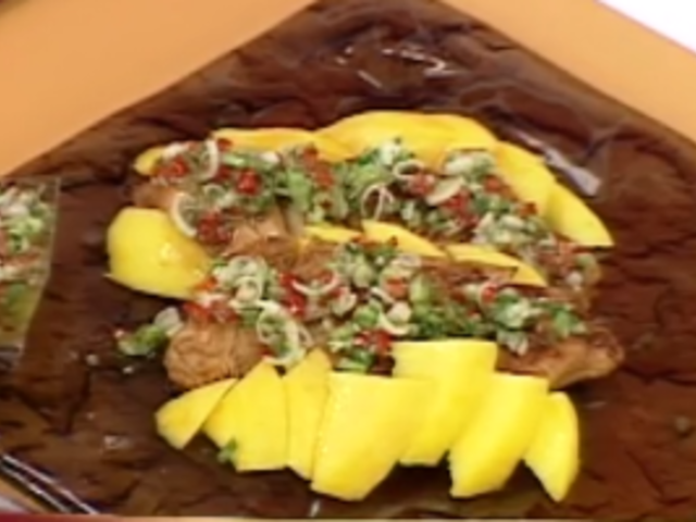 La chef Patty Chong prepara unas deliciosas pechugas doradas con mango.