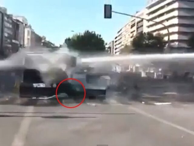El video muestra el preciso instante en el que un manifestante es arrollado por un tanque de la policía, sin embargo el hombre salió caminando con pequeña dificultad.