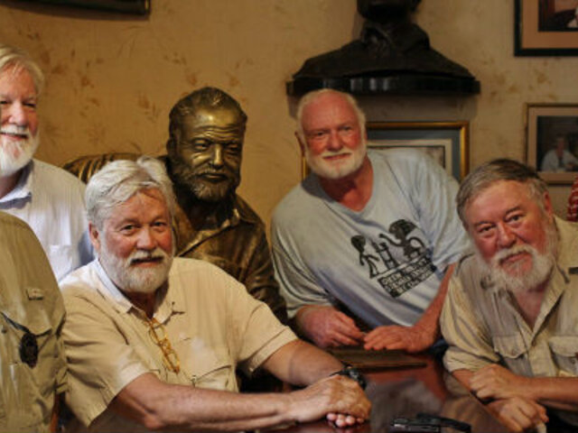 Seis imitadores del escritor norteamericano, Ernest Hemingway, viajaron hasta La Habana, Cuba, para debatir sobre su vida y obra en el 14 Coloquio Internacional dedicado al autor de El Viejo y el Mar. Sentados en la barra del 'Floridita', un bar que frecuentaba Hemingway, y vestidos con una chaqueta de cazador, camisa blanca y la típica barba blanca, estos 'clones' llamaron la atención de decenas de turistas en la isla cubana.