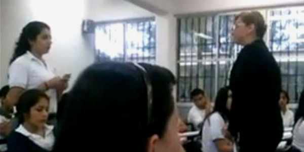 Yo también estoy molesta Marina, y el hecho que yo esté molesta, ¿me da el derecho de faltarte el respeto a ti en una red social y llamarte en la forma como tú me estás llamando?rdquo;. “Me dijiste perra, y para que se lo sepan los demás, me dijo puta”, siguió mientras los alumnos grababan la clase con sus celulares y tablets.