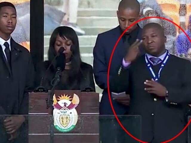 Las cámaras televisivas de todo el mundo registraron como el sujeto 'traducía' en lenguaje de sordomudos lo que expresaban los presentes, pero según denunciaron especialistas, ninguno de sus gestos ni movimientos eran reales.