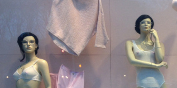 Resulta que el último miércoles, las vitrinas de la tienda ubicada en Nueva York se han convertido en el foco de atención para los miles de transeúntes. Las tres maniquíes femeninas vestidas con prendas íntimas y semitransparentes dejan ver un abundante vello púbico.