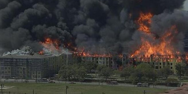 Reportan incendio de gran magnitud en complejo departamental de Houston