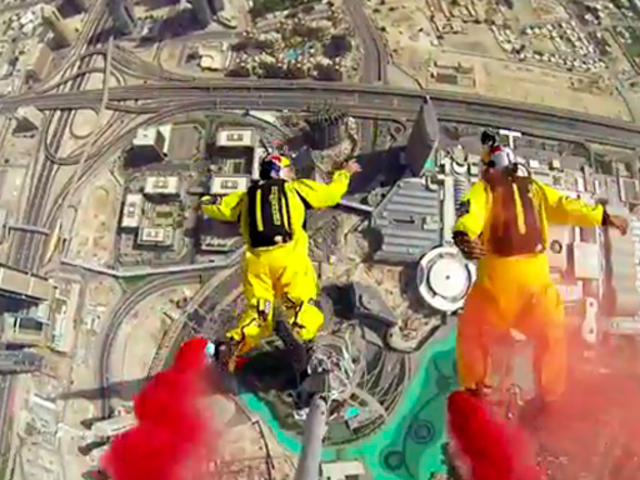 VIDEO: dos hombres se lanzaron en caída libre desde el edificio más alto del mundo