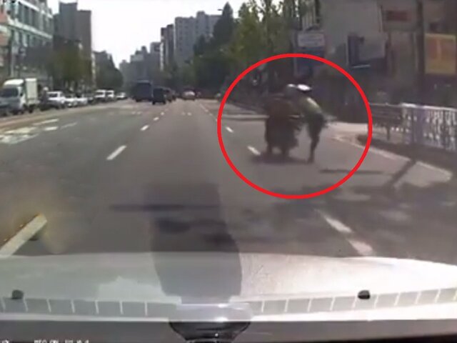 El hecho ocurrió en Corea del Sur. En el siguiente video se puede apreciar a la perfección como el efectivo policial, que pertenece al ayuntamiento de Seúl.