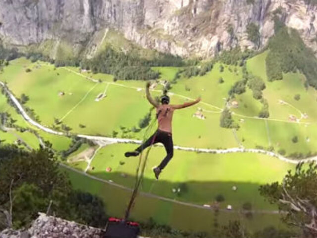 Un aventurero hombre decidió registrar su insólita experiencia al saltar con un paracaídas que enganchó en su propia espalda.