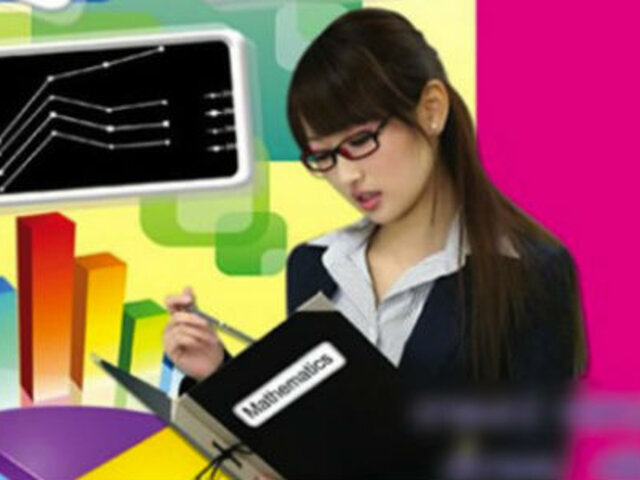 Sin embargo, en la parte inferior central desataca la figura de una joven y guapa maestra japonesa vestida sobriamente mientras revisa un libro que lleva por título simplemente “Matemáticas”.