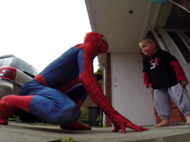 Un noble sujeto decidió darle una mágica sorpresa a su hijo de 5 años, diagnosticado con cáncer cerebral, por el día de su cumpleaños. Para ello, organizó lo que sería su última fiesta, en la que aparecería vestido de su súper héroe favorito: Spiderman. La enternecedora reacción del pequeño quedó registrada en un video, que obtuvo más de 700 mil visitas en YouTube.