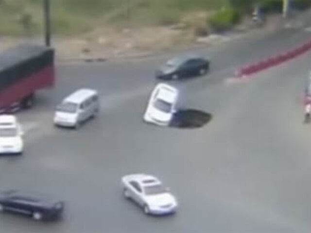 VIDEO: enorme socavón aparecido en una carretera se 'tragó' automóvil