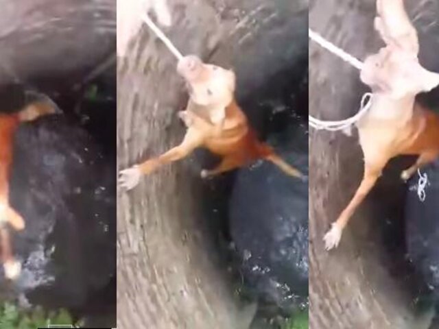 Una perra terminó en el interior de un profundo pozo mientras husmeaba por el lugar para encontrar algún alimento para sus cachorros. El rescate de la mascota fue más que dramática, pues cayó al pozo en reiteradas oportunidades mientras pretendían subirlo en una cuerda. Al final, fue rescatada para alegría de sus dueños.