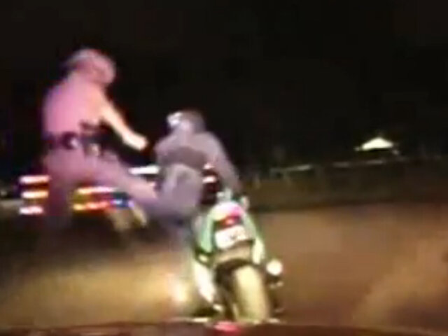 VIDEO : policía derriba a motociclista con espectacular patada