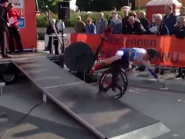 El ciclista holandés, Remco Grasman, protagonizó un indeseable hecho, luego de romperse el brazo cuando se disponía a realizar su salida en la prueba contrarreloj en el campeonato de su país.