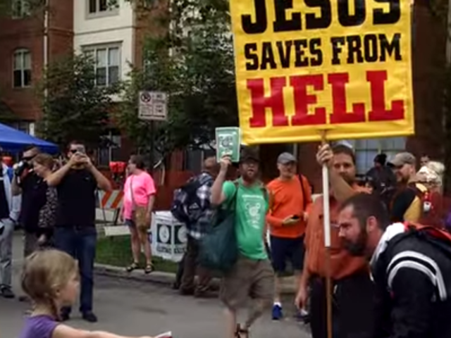 “Este mundo te dará dolor, divorcio, infartos” grita el predicador mientras le dice a la niña que Jesús es el salvador. Ryan Bowling, quien subió el vídeo a YouTube, asegura que el predicador “bajo un poco el tono de su discurso en cuanto la niña se enfrentó a el”.