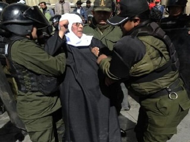 Activistas del grupo feminista boliviano Mujeres Creando se disfrazaron hoy de monjas embarazadas para protestar en las puertas de la catedral de La Paz contra la visita del Papa Francisco que comenzará el miércoles, informaron hoy los medios.