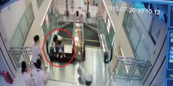 VIDEO: madre muere 'tragada' por una escalera eléctrica, pero salva a su hijo