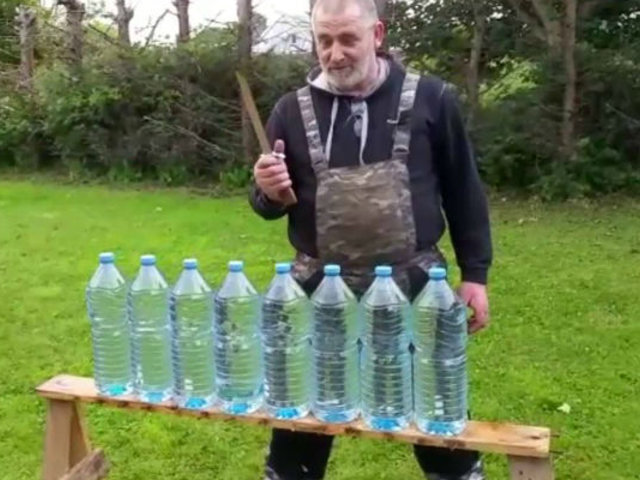 A través de las redes sociales circula un video, donde se aprecia a un hombre, que sería de origen checheno, usar un impresionante cuchillo para cortar, en un solo movimiento, hasta ocho botellas con una precisión quirúrgica.