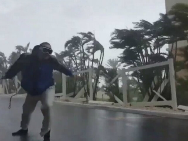 Quiso comprobar su poder y casi sale volando. Un periodista argentino arriesgó su vida para reportar el paso del huracán Matthew en Paradise Island, Bahamas.