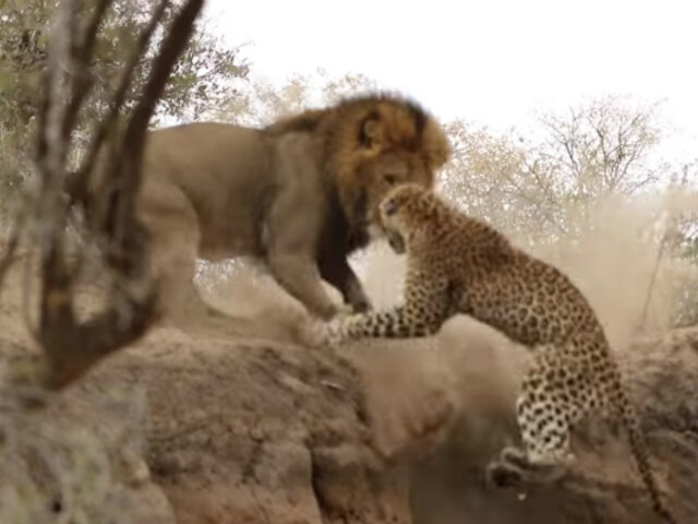 Un video de la impactante pelea entre un león y un leopardo en la reserva de Sabi Sands, en Sudáfrica, se ha viralizado en YouTube. Las imágenes fueron grabadas por el guía del recinto que se encontraba en la zona.