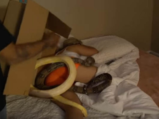 El muchacho lanzó unas serpientes a su pareja mientras ella dormía plácidamente. Todo fue grabado para luego subirlo a YouTube.