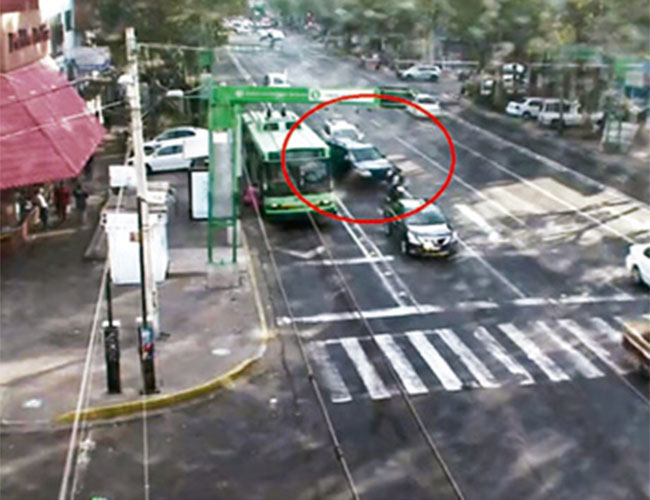 En imágenes de las cámaras de seguridad se puede observar cómo un vehículo de color negro, en varias ocasiones trata de cerrarles el paso y dar alcance a los sujetos de la moto.