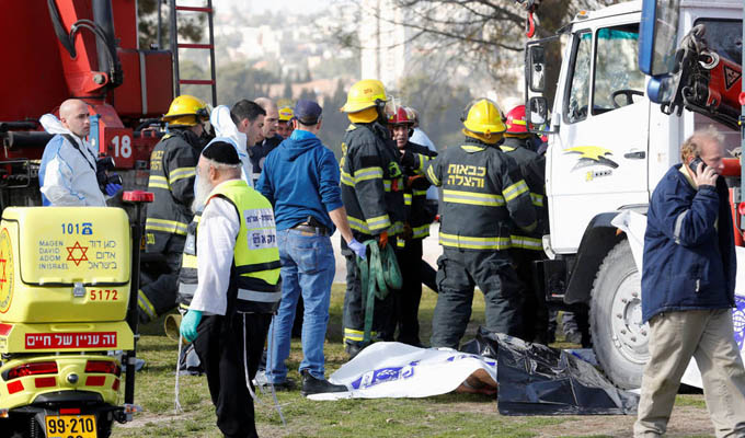 Según testigos, un conductor árabe, con ciudadanía israelí, arrolló con su camión a un grupo de soldados en una parada de autobús en el concurrido paseo de Armón HaNatziv.