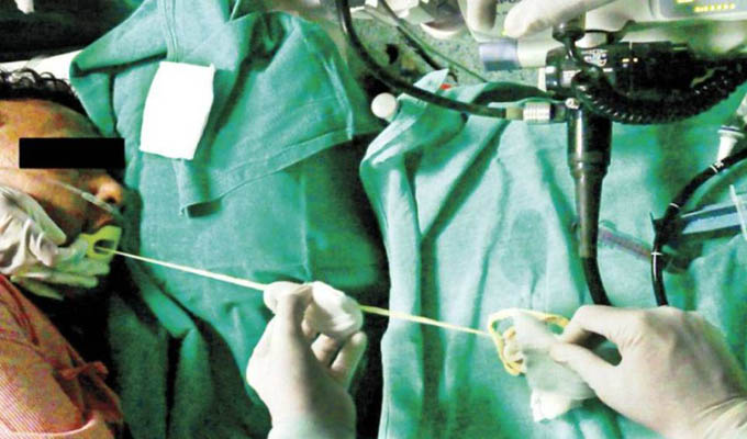 Lo sedaron y un equipo de médicos del Hospital Instituto del Hígado y Ciencias Biliares en Nueva Delhi pudo extraer la lombriz jalándola cuidadosamente por la boca.
