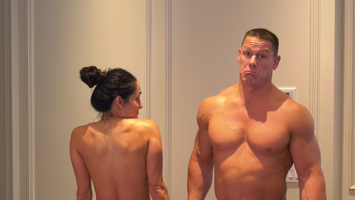 Al inicio del divertido clio, Nikki Bella contó que le costó convencer a la estrella de la WWE. “Estamos listos para darles todo de nosotros a todos ustedes”. Mientras tanto Cena le repite que no es una buena idea hacerlo, pero Bella lo calla y le dice que se quite la ropa.