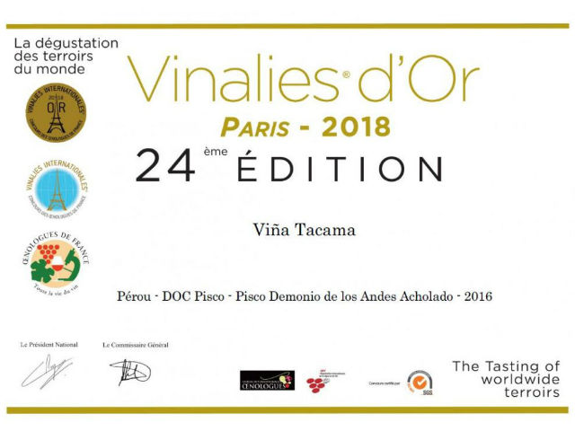 ¡Se hizo respetar! El pisco se impuso ante el aguardiente chileno en el reconocido concurso Vinalies Internationales de París realizado en la capital francesa el entre el 2 y 6 de marzo. Se trata del pisco Demonio de los Andes acholado de Viña Tacama, que se llevó la medalla de oro.