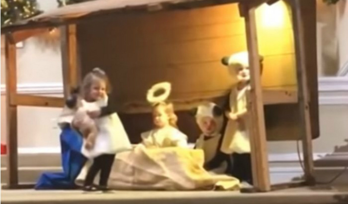 Una escenificación por navidad se salió de control luego que la pequeña que interpretaba a una oveja se llevó al Niño Jesús.