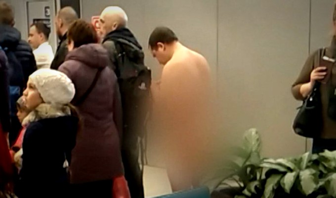 La Policía del aeropuerto moscovita de Domodedovo (Rusia), detuvo a un hombre completamente desnudo cuando intentaba embarcar en un avión rumbo a Crimea. Cuando se le preguntó el motivo, le dijo a las autoridades que ir sin ropa lo hacía más “aerodinámico”.