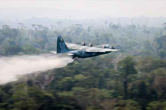 El ejército brasileño utiliza dos aeronaves C-130 Hércules capaces de arrojar hasta 12 mil litros de agua, agregó el ministro de Defensa.