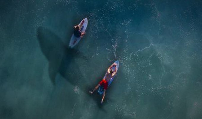 Un grupo de bañistas practicaba surf en tablas eléctricas sin percatarse de que varios tiburones blancos nadaban cerca. En el material audiovisual se ve cómo los grandes escualos pasan justo al lado de los surfistas, que no parecen darse cuenta del peligro.