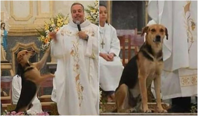 Las tiernas fotografías del cura junto a los animales de cuatro patas, en las misas, vienen viralizándose en redes sociales, ya que muy aparte de dar la palabra del Señor, también apoya y da cariño a los perros sin hogar.