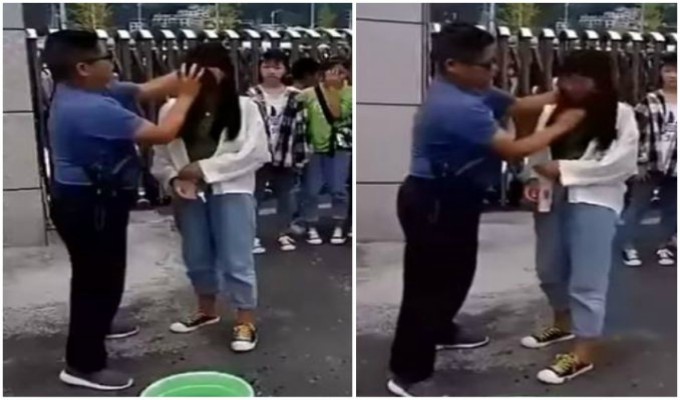 En China, un profesor generó polémica por desmaquillarcon un trapo a un grupo de alumnas que intentan entrar a clases. El hecho quedó registrado en video y fue difundido en las redes sociales.