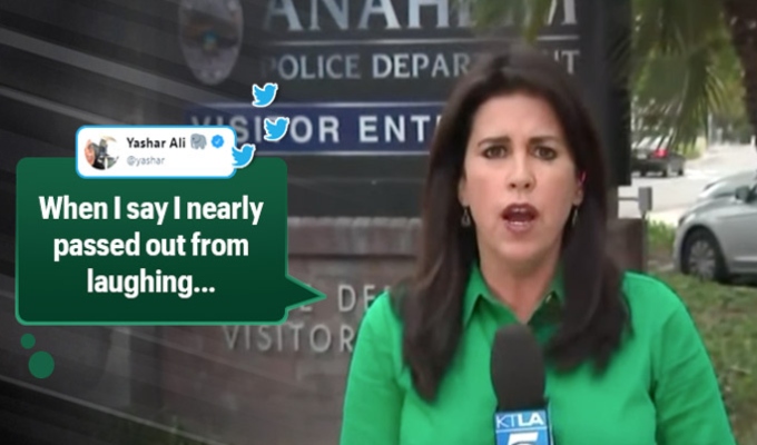 Se trata de Sara Welch, reportera del canal KTLA de Los Ángeles, quien afirmó durante una trasmisión en vivo que trató de comunicarse con un hombre que había muerto durante una persecución policial, pero este "no se encontraba disponible para hacer comentarios".
