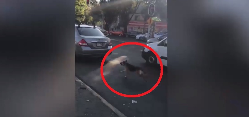 La persona que captó el momento andaba paseando a sus mascotas cuando de repente se percató que dos mujeres bajaron del auto a un perrito mientras el semáforo estaba en rojo y al ponerse en verde siguieron su camino dejando al perrito en medio de la calle y con el riesgo de ser atropellado.