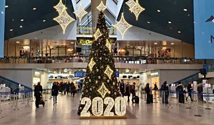 Navidad: aeropuerto adorna su árbol con artículos confiscados