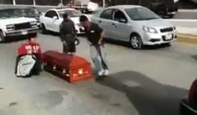 Los hechos ocurrieron en la ciudad de Saltillo, en México, cuando el féretro con el difunto adentro, se cayó del vehículo en medio de una transitada calle, cuando se dirigía al cementerio.