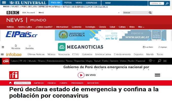 Prensa extranjera informa sobre estado de emergencia y cierre de fronteras en Perú