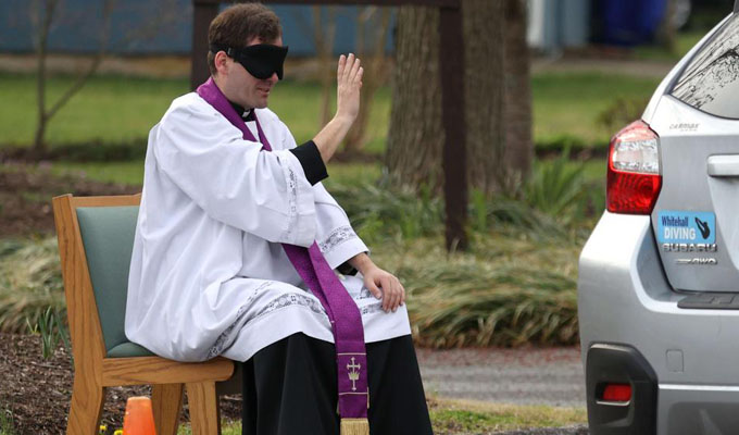 Ante el temor que despierta la pandemia del coronavirus en las personas, el sacerdote Scott Holmer, de la iglesia de St Edward, en Bowie, Maryland, Estados Unidos, decidió ofrecer a los fieles el sacramento de la confesión sin que estos bajen de sus autos.