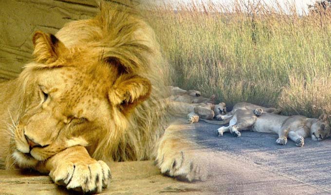 Varios leones duermen en las autopistas paradójicamente gracias al coronavirus, en terrenos que muchos años atrás eran de ellos.