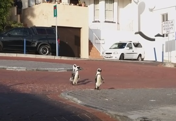 Tal es el caso de un pueblito cercano a la Ciudad del Cabo en Sudáfrica, donde un grupo de tres pingüinos "Jackass" fueron captados haciendo de las suyas, aprovechando la casi nula ausencia de actividad humana.